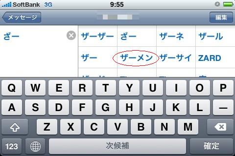 画面左側が入力した「ざー」、画面右側が予測変換群です。
