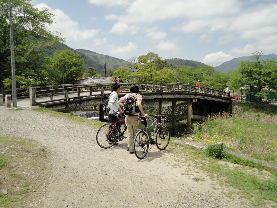 市街地を外れたところの駐車場に車を止めて自転車に乗り換え、